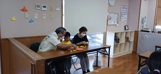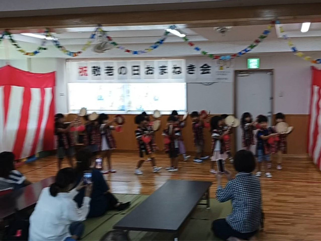 園児のエイサーや触れ合いあそび、祖父母へのプレゼント作りにおやつと楽しい時間を過ごしましたよっ♪