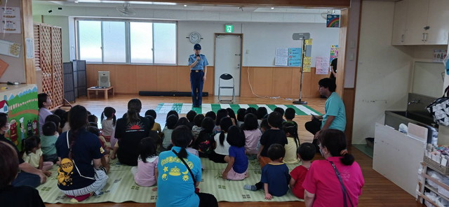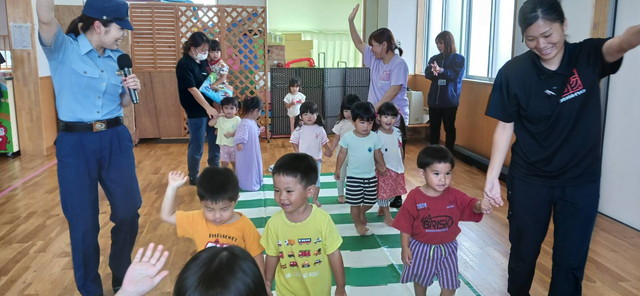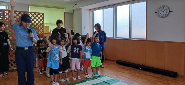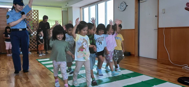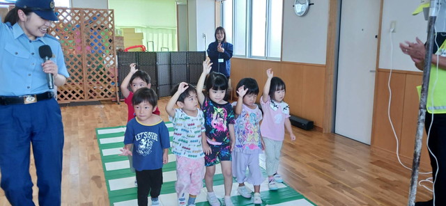 『右見て左見てもう一度右見て』と言いながら手を挙げ上手に渡る事が出来ました♪(2024.8.9)