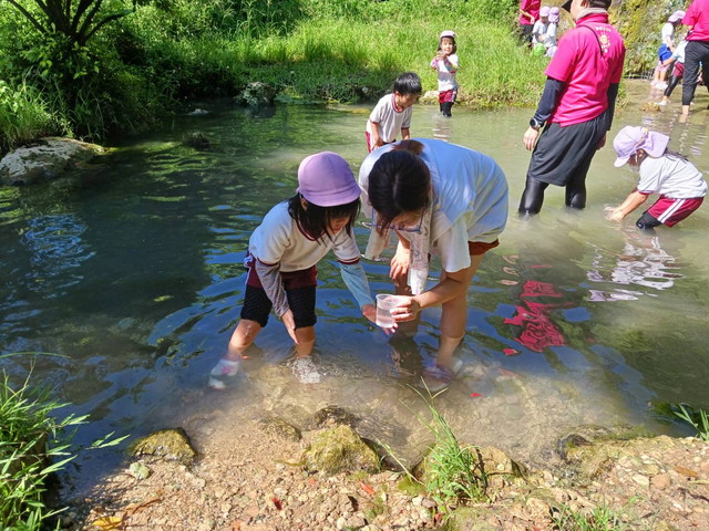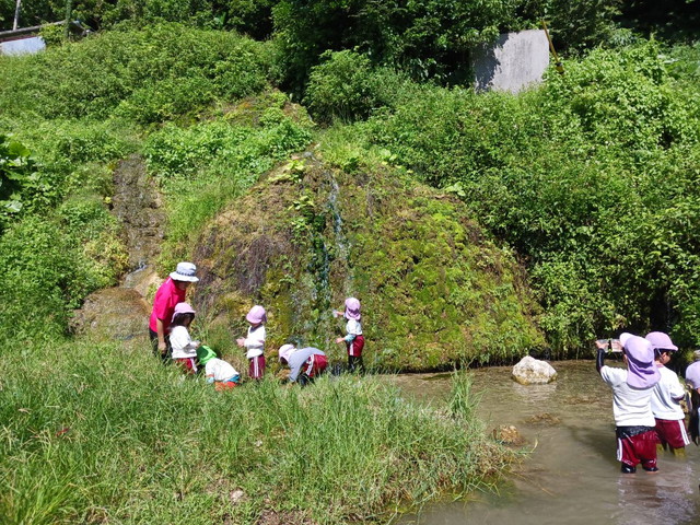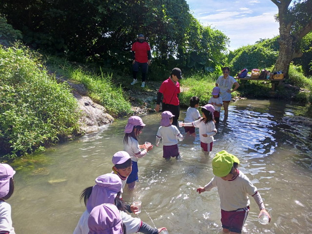 アメンボやトンボ、魚やエビと一緒に水遊びをし
