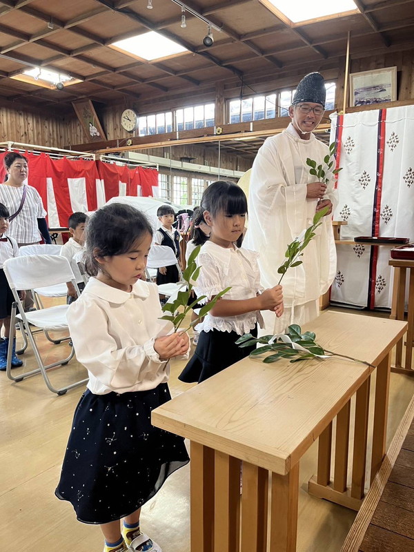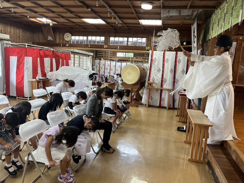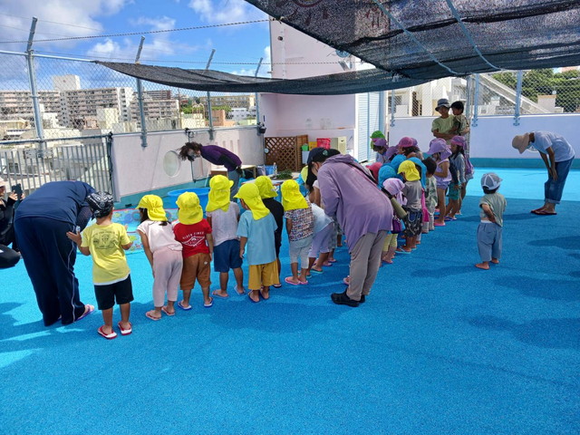 プール開きを行いました。子ども達に事故やケガがないようお払いを行いました。(2025.6.30)