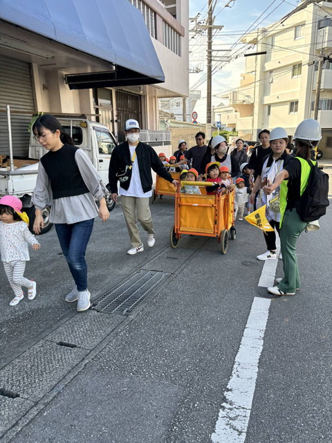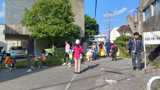 沢山の保護者に参加してもらい、避難経路を一緒に歩きました。