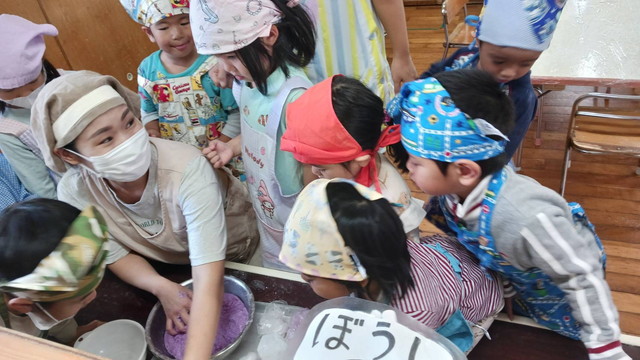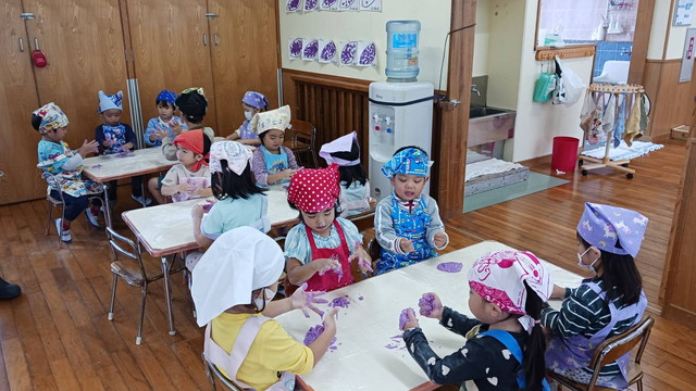 【3.4.5歳児】紅芋味のムーチーを作りました(2024.12.6)