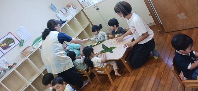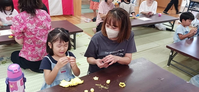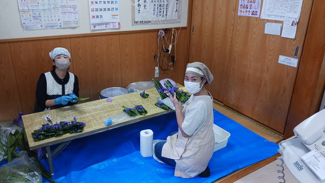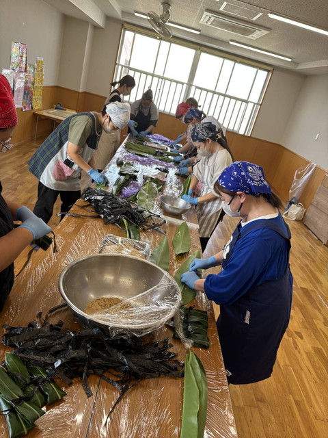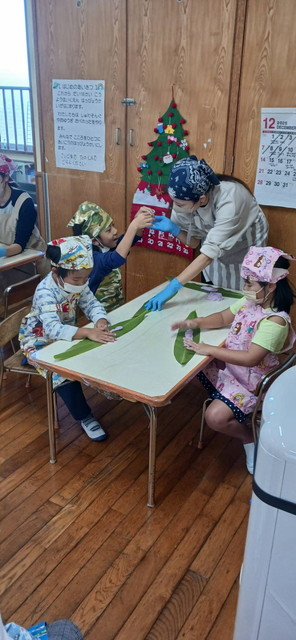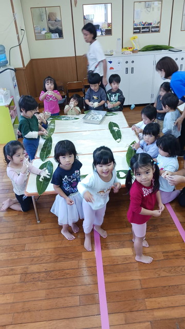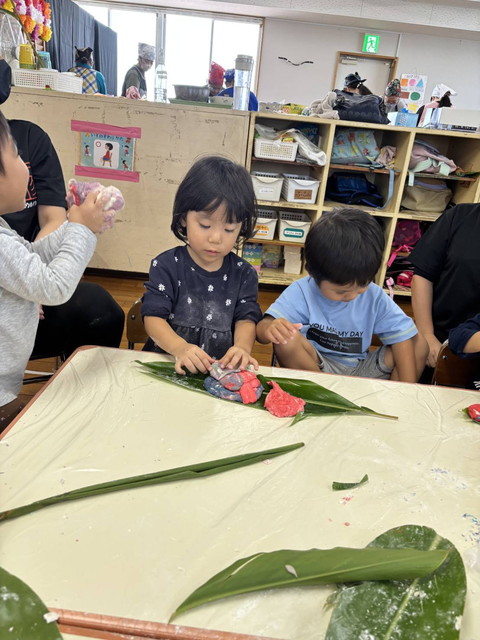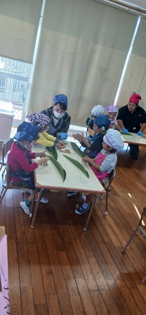 保護者さんのお手伝いもあり、楽しくムーチー作りができましたよ。