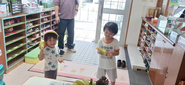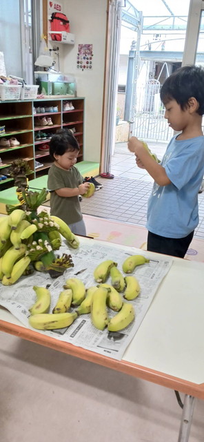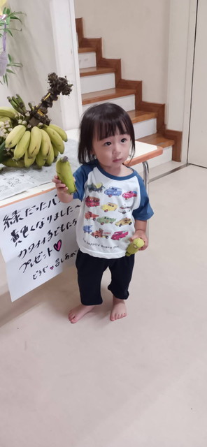 子ども達はバナナをもらい嬉しそうです♪(2025.7.8)