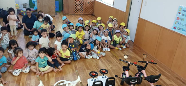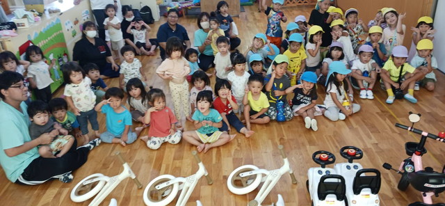 園長先生から三輪車やストライダーのプレゼントもらいましたっ!!