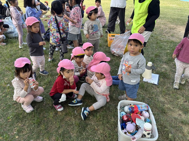 地域の事業所さんと交流が出来ました。お菓子をいっぱいもらい、子ども達は大喜びです♪