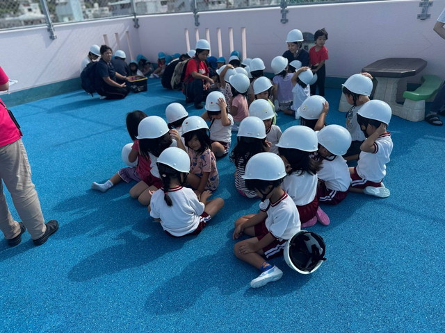 全園児、職員で自園の屋上に『垂直避難』を行いました(2024.11.5)