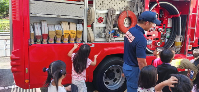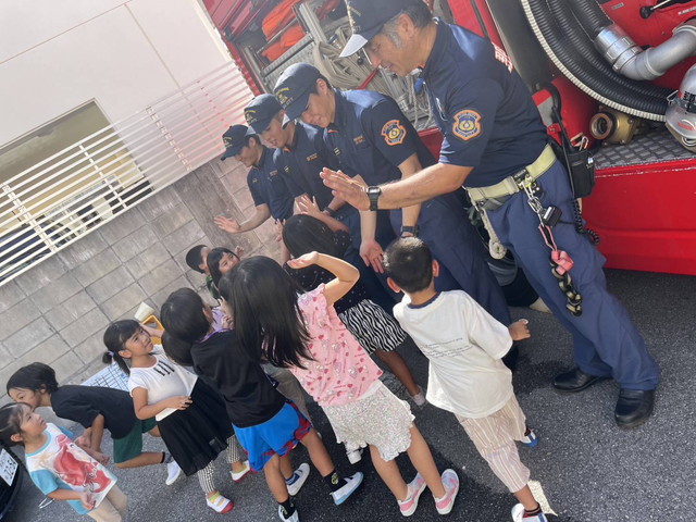 カッコいい消防士さんとのスキンシップに子ども達大喜び♪♪